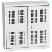Constructie van gelast plaatstaal Verstevigde deuren met spanjoletslot met 3-puntsvergrendeling Geventileerde deuren voor een goede ventilatie en zichtbare inhoud Legborden van gegalvaniseerd staal verstelbaar in stappen van 25 mm Draagvermogen per legbord 60 kg Let op, veiligheidsadviezen: plaats het meubel op een vlak oppervlak, bevestig het aan de muur of een scheidingswand met geschikt bevestigingsmateriaal. Respecteer de aanbevolen maximale belasting en zorg voor een goede gewichtsverdeling. Gemaakt in het UK Max. belasting (kg) : 1000 Max. belasting per legbord (kg) : 75