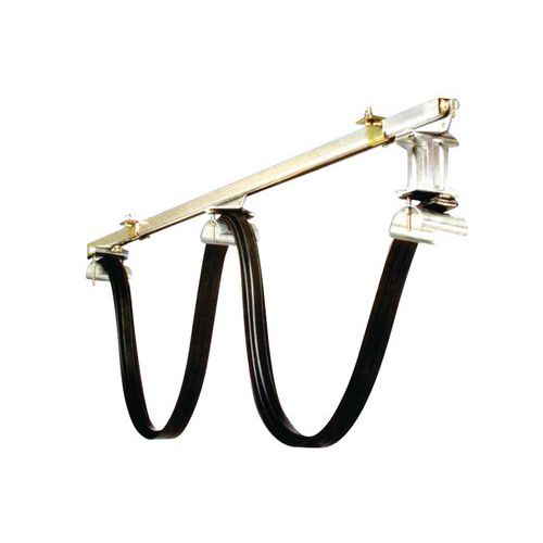 Voedingskabels op staalkabel voor hijsbalk aan wanden en op sokkel Voedingskabels op staalkabel voor hijsbalk aan wanden en op sokkel