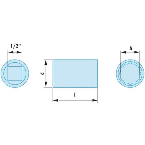 Vonkvrije 12-kant doppen 1/2, metrische maten, Aantal kanten: 12, Type nr.: S.8SR, Model: Dop, Lengtes: 40 mm