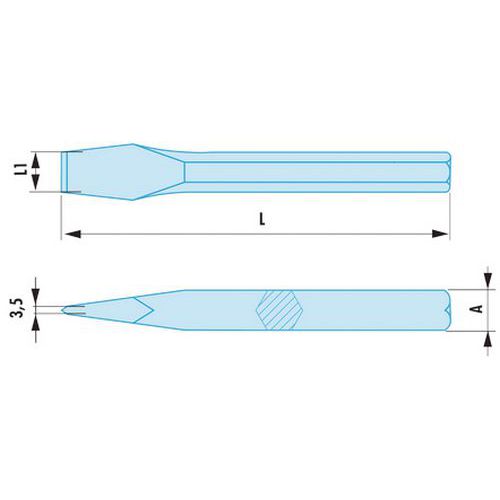 Vonkvrije koudbeitels, Type nr.: 265.28SR, Ø: 17 mm, Gebruik: Slaan, Lengte: 350 mm