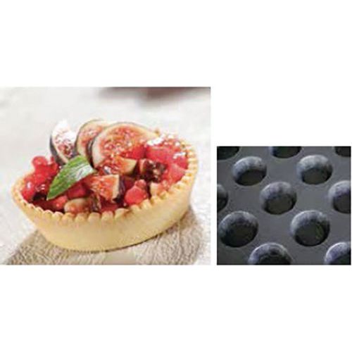 Ontwerp van open, gevlochten glasvezelstructuur geïmpregneerd met siliconen, voor het bakken van soesjesdeeg en bleek gebakken bodems van taartjes.