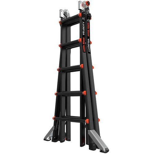 Telescopisch verstelbaar om op oneffen terrein en met vaste wielen te gebruiken om de ladder eenvoudig te verplaatsen.
