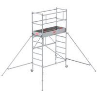 Deze lichtgewicht vouwsteiger is dankzij de compacte afmetingen ideaal voor gebruik binnen en bij deuropeningen. Flexibele, aanpasbare en uitbreidbare werkhoogte door toevoegen van de modules 1, 2 en 3. Vouwdeel in het frame, weinig onderdelen te monteren en geheel opvouwbaar om weinig plaats in te nemen. Smalle vouwsteiger met houten platforms en kantplanken. Steiger met verstelbare, dubbelgeremde wielen (125 mm).