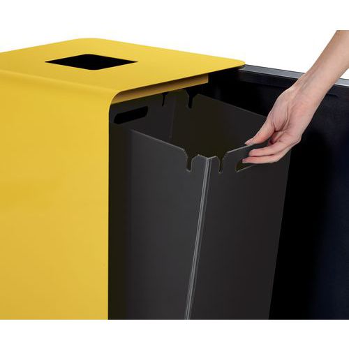 Staal met anti-uv coating Deur met frontale ’push’-opening en zeefdruk Gekleurde deksels met gekalibreerd opening voor afvalsortering Aanduiding van type afval op de basis 4 plastic poten om contact met de grond te vermijden Binnenemmer 40L : gerecycled polypropyleen zwart Installatie in overdekte ruimte aanbevolen Personalisatie op aanvraag: Gekalibreerde opening op maat, Andere kleuren, Aanpassing van signalisatie of taal CUBATRI, in enkelvoudige of meervoudige uitvoering, is de ideale oplossing voor uw gescheiden afvalophaling. CUBATRI zet aan tot sorteren.