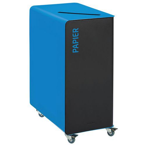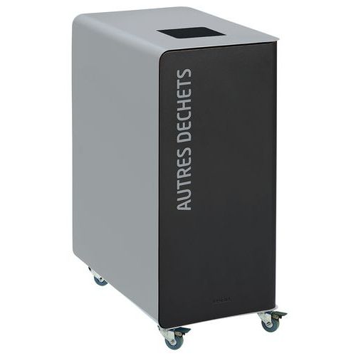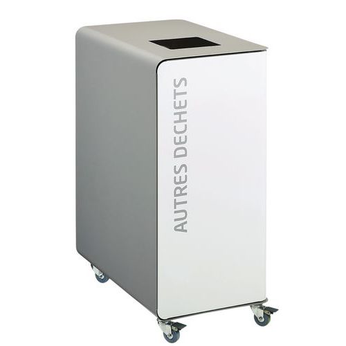 De sorteerpaal CUBATRI 90L zonder slot - met wielen - zakhouder is ideaal voor het sorteren in alle soorten overdekte omgevingen. Anti-UV gepoedercoat staal Push / pull openingssysteem dankzij de mechanische vergrendeling Gezeefdrukte deur met opening aan de voorkant Gekalibreerde opening (vierkant: 170 x 170 mm) en identificatie van het sorteertype Geïntegreerde zaksteun van 18/10 AISI 304 roestvrij staal op verzinkt stalen schuif 4 zwenkwielen Ø50mm: 2 met rem + 2 zonder rem
