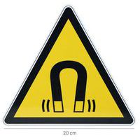Dit signaalbord met pictogram wijst op de aanwezigheid van een magnetisch veld en wijst tegelijkertijd erop dat moet worden gecontroleerd of voorzorgsmaatregelen zijn genomen.