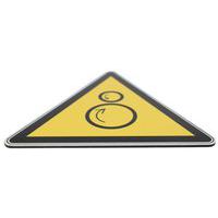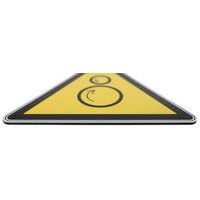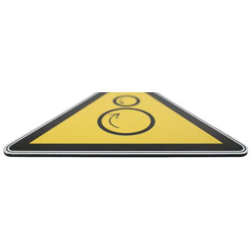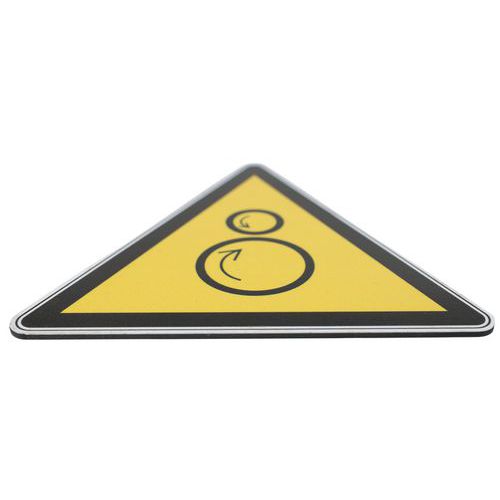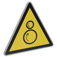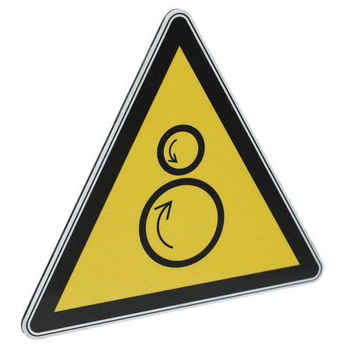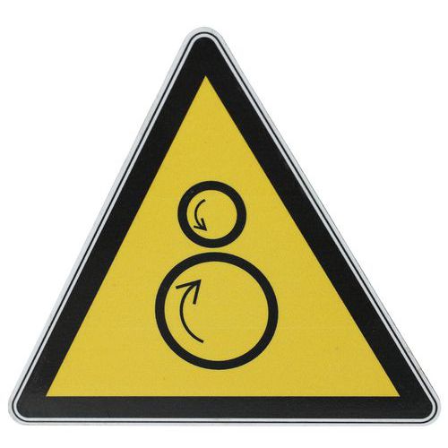 - Dit bord met pictogram is bijzonder geschikt om te wijzen op gevaar door tegenovergesteld draaiende rollen.