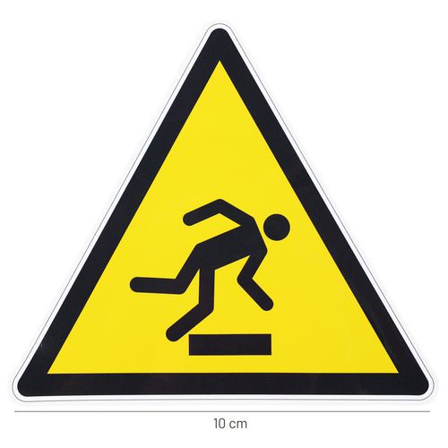 - Markeer zones met struikelgevaar door middel van dit bord, met een duidelijk en voor iedereen begrijpelijk pictogram.