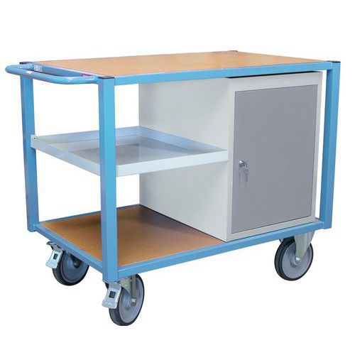 | Productnaam | Wagen met 3 plateaus en 1 kast, Max. belasting: 500 kg, Totale hoogte: 945 mm, Totale breedte: 680 mm |