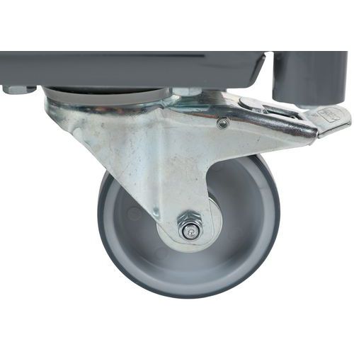 Dankzij de vier stille wielen, waarvan twee zwenkwielen met remmen, verplaatst deze wagen zich opmerkelijk soepel, zelfs in kleine ruimtes.
