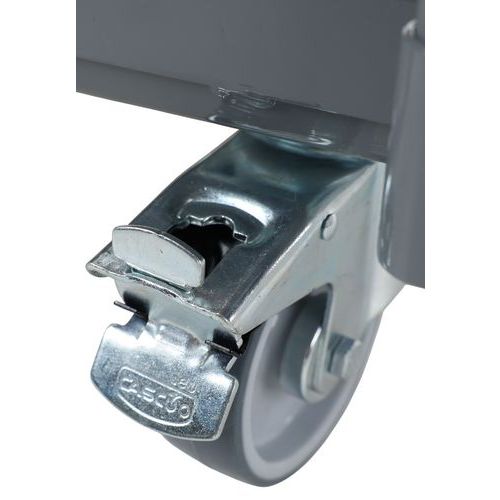 Met de wielen met rem kunt u de serveerwagen veilig vastzetten, zodat hij niet ongewenst gaat schuiven tijdens het laden, lossen of opslaan.