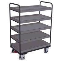 Wagen met 5 hoge plateaus met randen, Max. belasting: 250 kg, Totale hoogte: 1530 mm, Totale breedte: 1060 mm Wagen met 5 hoge plateaus met randen, Max. belasting: 250 kg, Totale hoogte: 1530 mm, Totale breedte: 1060 mm