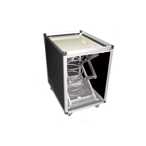 - Rubberen wielen Ø 80 mm, 2 vast + 2 zwenkwielen met rem. Wanddikte 6,8 mm. Robuust: frame in geanodiseerd aluminium profiel met geïnjecteerde zwarte kunststof hoeken.