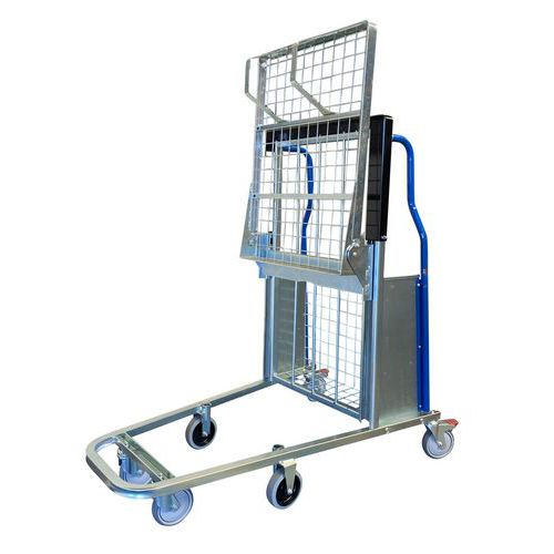De verzinkte wagen met een constant niveau van FIMM is ontworpen voor het voorbereiden van bestellingen en het laden en lossen van pakketten, waardoor het werk op de werkplek minder vermoeiend wordt. De beweegbare geveerde bodem houdt de last automatisch op pakhoogte, waardoor de gebruiker zich minder vaak voorover hoeft te buigen of te bukken, voor meer comfort. Het opklapbare plateau en het stapelbare ontwerp zorgen voor een grote ruimtebesparing, wat ideaal is voor magazijnen en werkplaatsen. De verzinkte afwerking zorgt voor een goede corrosiebestendigheid bij intensief gebruik in logistieke omgevingen. De verzinkte wagen met constant niveau van FIMM, die is uitgerust met zwenkwielen waarvan 2 met rem, voldoet aan de norm EN 1757, is zeer eenvoudig te hanteren en veilig voor orderpicken, laden en lossen. Deze verzinkte wagens met constant niveau kunnen worden gebruikt in de logistiek, de grootschalige distributie, verzend-/ontvangstdiensten, de verpakkingsindustrie of e-commercepla