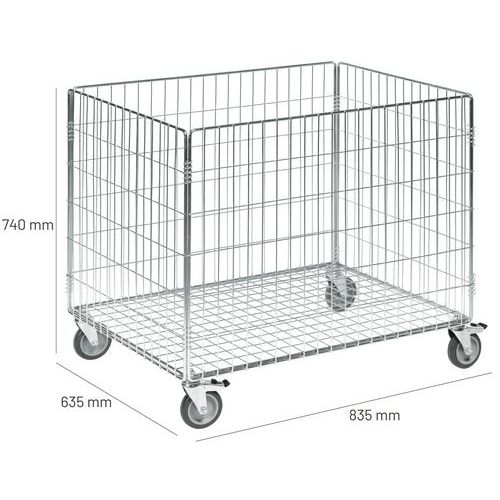 | Productnaam | Wagen met gaaswanden, Zwenkwiel Ø: 100 mm, Max. belasting: 60 kg, Totale hoogte: 740 mm |