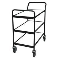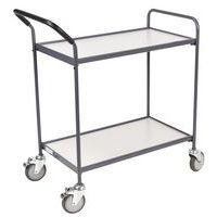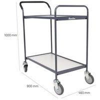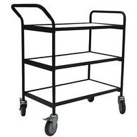 - Trolley met houten plateaus met buisframe van staal. Houten MDF plateaus, geschikt voor zware lasten.