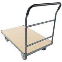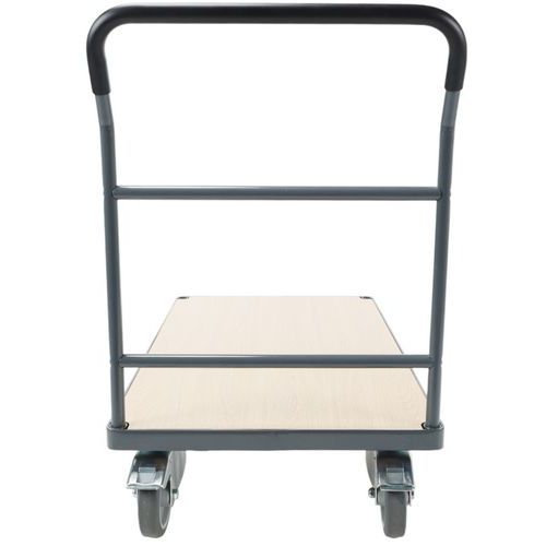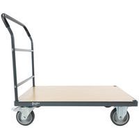 - Plateauwagen met vaste duwbeugel voor veilig vervoer tot 500 kg.