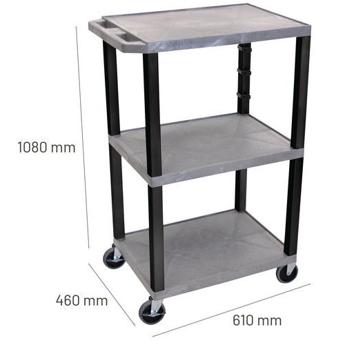 Wagen van gerecycled kunststof - 3 plateaus - Hoogte 108 cm - Draagvermogen 180 kg