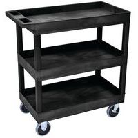 Wagen van gerecycled kunststof - 3 plateaus met opstaande rand - Hoogte 95 cm - Draagvermogen 230 kg