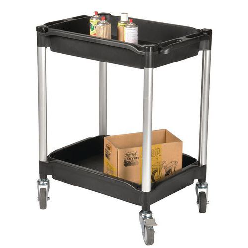 | Productnaam | Wagen van polypropyleen met 2 legborden met opstaande rand, Max. belasting: 200 kg, Totale hoogte: 875 mm |