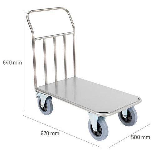 Wagen van RVS met vaste duwbeugel - Laadvermogen 500 kg Wagen van RVS met vaste duwbeugel - Laadvermogen 500 kg