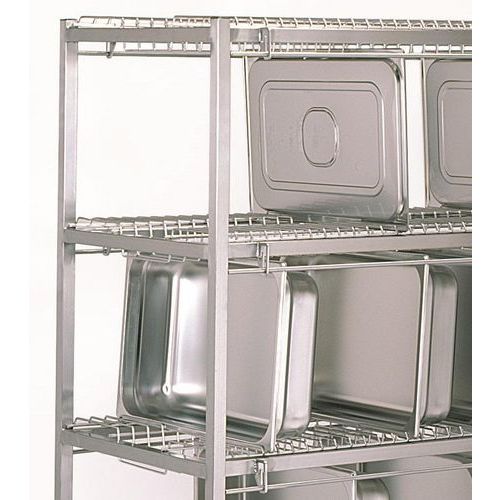 | Productnaam | Trolley voor bakken GN, Breedte: 67.8 cm, Hoogte: 175.4 cm, Lengte: 62 cm, Materiaal: Staal |