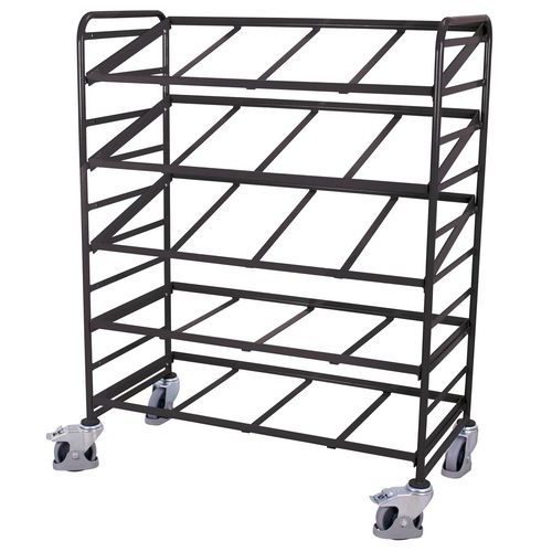 - Etagewagen breed met 5 etages voor Euronorm-bakken, met een mechanisch gelaste constructie van buisstaal.