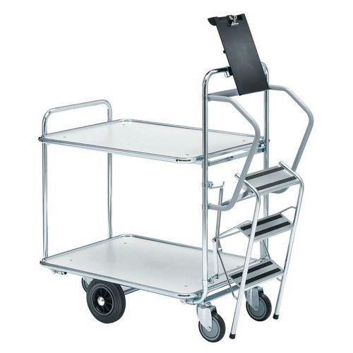 Wagen voor het voorbereiden van bestellingen met trap - 2 plateaus - draagvermogen 300 kg