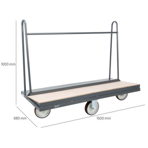 Platenwagen 1500 x 680mm - draagkracht 400 tot 500 kg - Manutan Expert