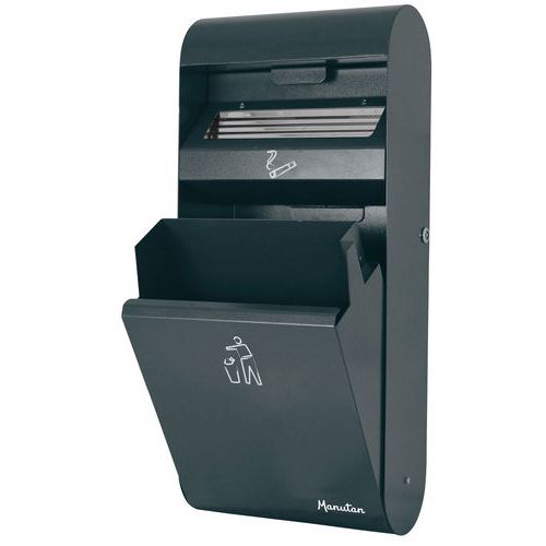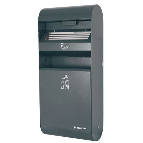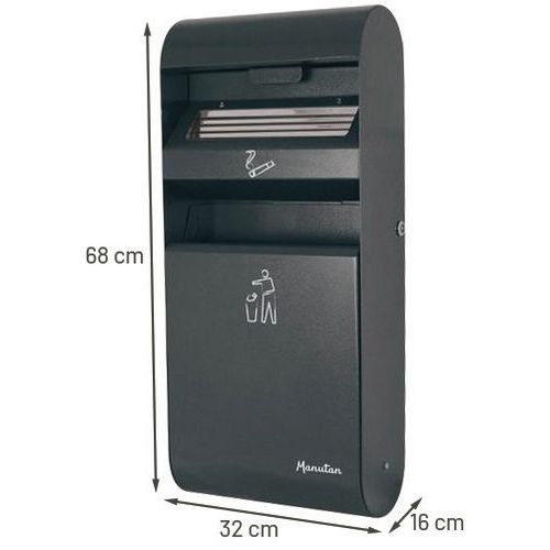 | Productnaam | Wandasbak/-afvalbak, Asbak inhoud: 3 L, Kleur: Donkergrijs, Materialen: Staal, Hoogte: 68 cm, Breedte: 16 cm |