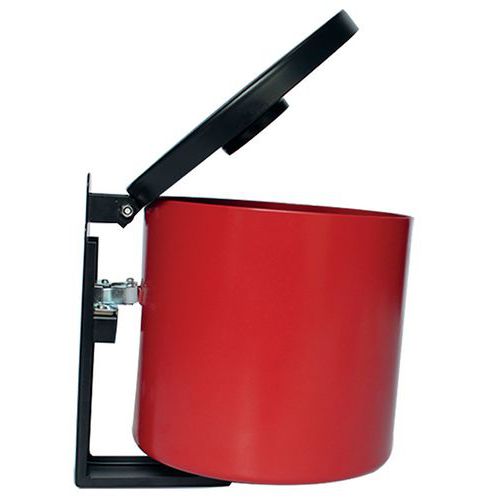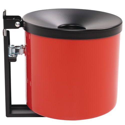 Brandwerend ontwerp met zelfdovend deksel. Van gegalvaniseerd roestbestendig staal. Muurasbak, eenvoudig te legen door kantelen.