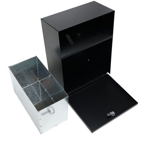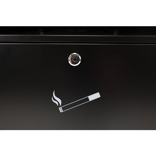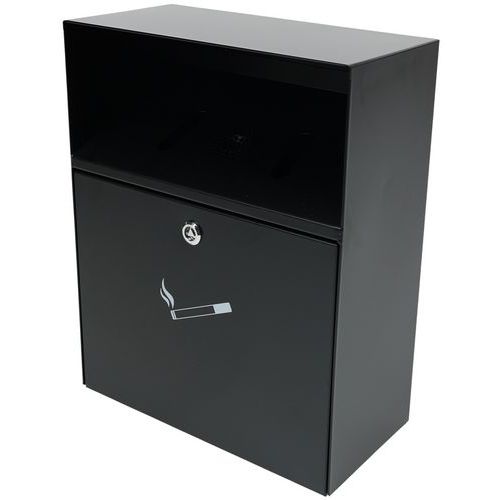 | Productnaam | Wandasbak met afdak, Asbak inhoud: 4 L, Kleur: Zwart, Materialen: Rvs, Hoogte: 37 cm, Breedte: 28 cm |