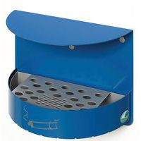 Wandasbak voor buiten met beschermingskap tegen regen. Bestand tegen alle weersomstandigheden dankzij de UV-bestendige coating van epoxypoederlak. Robuust: duurzame en hoogwaardige constructie, van gegalvaniseerd plaatstaal. Eenvoudig te legen asbak, beveiligd met dubbel lipslot (1 sleutel), anti-diefstal.