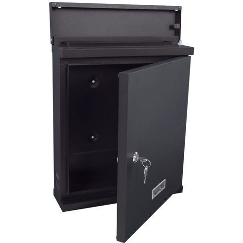 | Productnaam | Wandbrievenbus Valencian, Materiaal: Staal, Kleur: Zwart, Breedte: 33.5 cm, Diepte: 10 cm, Hoogte: 42 cm |
