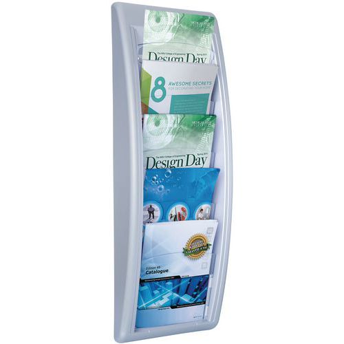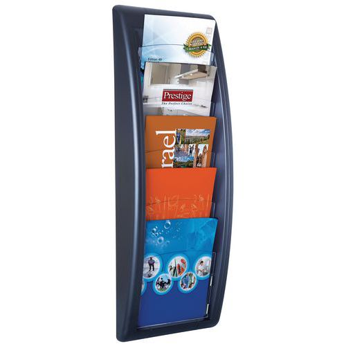Een aanwinst op kantoor. Wanddisplay met transparante vakken om brochures duidelijk en overzichtelijk ordenen. U pakt direct de juiste brochure. Vak met een dikte van 2 cm met vensters van kristalpolystyreen. Houder van gekleurd polystyreen. Gemonteerd geleverd. Bevestiging met schroeven (niet meegeleverd). Gemaakt in de EU