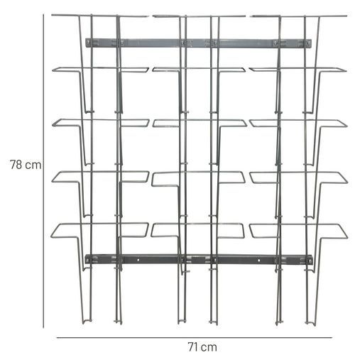 Wandfolderhouder A4, Aantal vakken: 15, Kleur: Grijs, Totale breedte: 71 cm, Totale hoogte: 78 cm