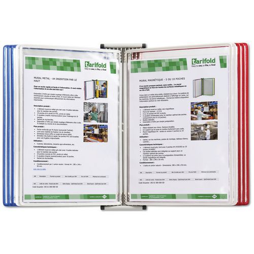 | Productnaam | Wandhouder 10 hoezen voor A4-formaat in blauw wit rood, Showtas kleur: Diverse, Showtas materiaal: PVC |