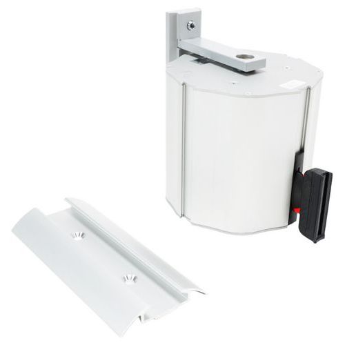 Bandbehuizing met muurbevestiging. Kan worden toegepast voor een afbakening in alle richtingen. Ingebouwde rem zodat de band niet te snel terugschiet. Oprollen wordt afgeremd indien de band per ongeluk los gaat. Geschikt voor buitengebruik.