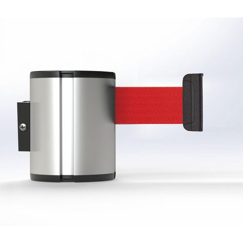 Geanodiseerde wandhouder XL 21 met 7 meter lange band. Gebruiksvriendelijk, perfect voor binnen- en buitenruimtes. Ruimtebesparende oplossing voor het afbakenen van zones. Robuust en bestand voor zowel incidenteel als intensief gebruik. Perfect voor productiezonen of zeer drukke gebieden.