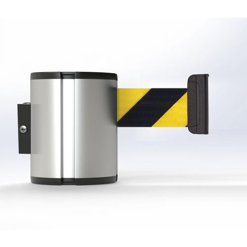 Geanodiseerde wandhouder XXL met 12 meter lange band. Gebruiksvriendelijk, perfect voor binnen- en buitenruimtes. Ruimtebesparende oplossing voor het afbakenen van zones. Robuust en bestand voor zowel incidenteel als intensief gebruik. Perfect voor productiezonen of zeer drukke gebieden.