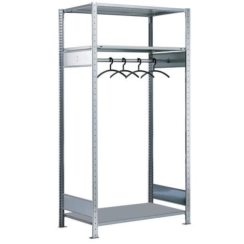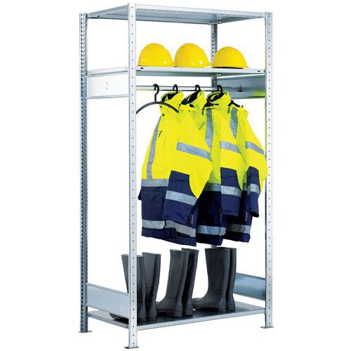 Garderobestelling zijn ideaal voor het ophangen en horizontaal opbergen van werkkleding en beschermende kleding. Ze zijn ideaal voor kleedkamers en werkplaatsen en zijn bijzonder flexibel dankzij de individuele hoogteverstelling van de afzonderlijke opbergmogelijkheden.