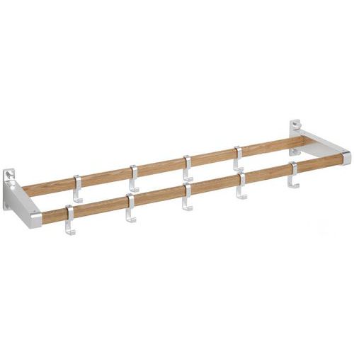 Wandrek van geanodiseerd aluminium, fraaie afwerking met dubbele haken. Frame, stang en haken van stevig en duurzaam materiaal. Bestaat uit 3 parallel geplaatste stangen met haken.