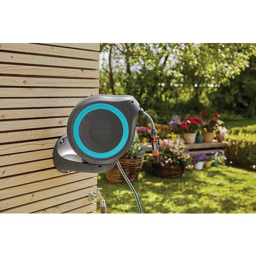 Wandslangbox Roll-Up , Model: 18610-20, Kleur: Zwart/blauw, Type: Automatische slanghaspel voor aan de muur Wandslangbox Roll-Up , Model: 18610-20, Kleur: Zwart/blauw, Type: Automatische slanghaspel voor aan de muur