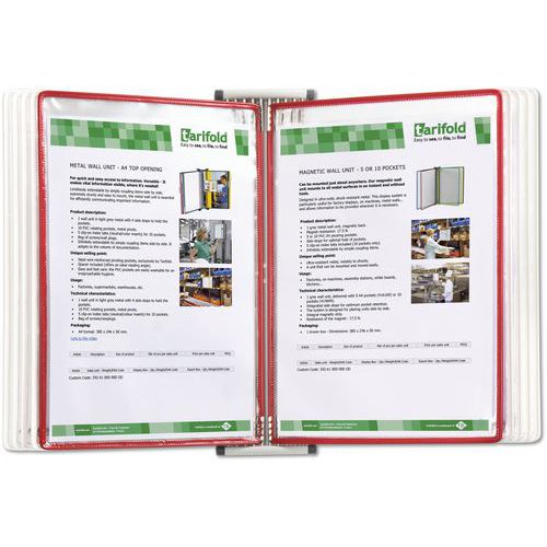 | Productnaam | Wandsysteem metaal Tarifold A4 10 zichtpaneel Japan kleur, Lean Management: ja, Kleur: Grijs, Breedte: 500 mm |