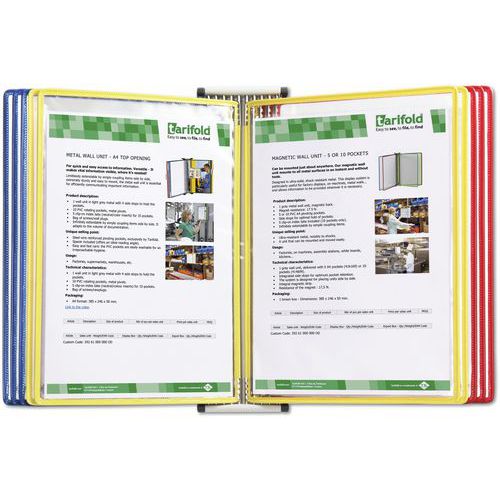 | Productnaam | Wandsysteem metaal Tarifold A4 10 zichtpaneel Roemenie kleur, Lean Management: ja, Kleur: Grijs |