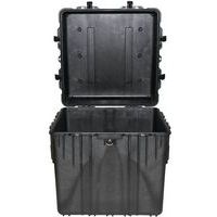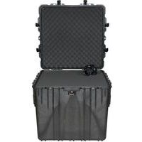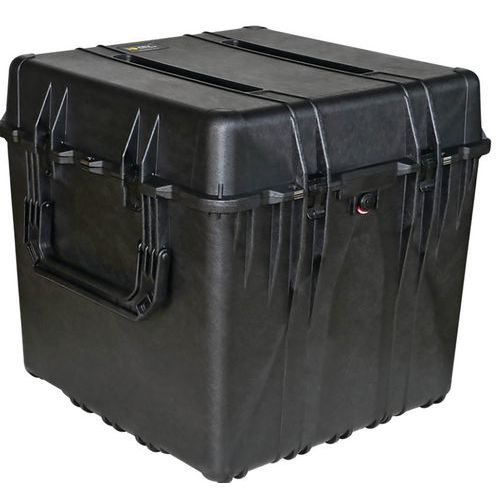 - Waterdichte beschermkoffer zwart Peli Case 0370 met grote, neerklapbare handgrepen, vast te pakken door 2 personen.