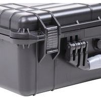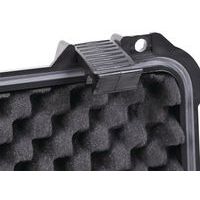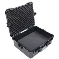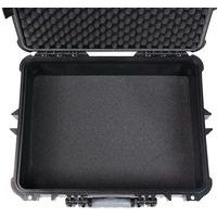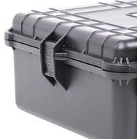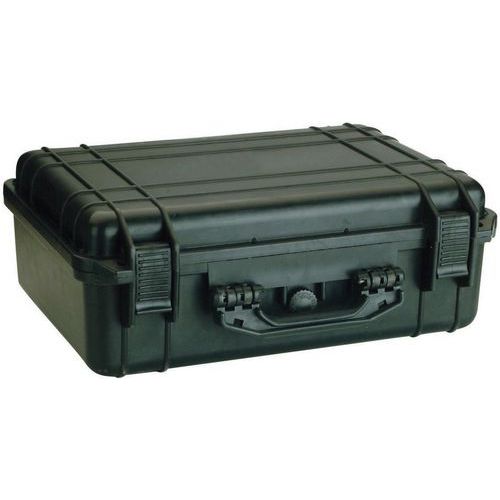 Schok-, water- en stofbestendige koffer. Interieur gevoerd met gekarteld, zeer bestendig schuimrubber. Uitgerust met zelfblokkerende roestvrijstalen scharnieren op 90°. Vergrendeling door op de knop onder de handgreep te drukken. Bodem met voorgesneden schuim dat alle vormen van voorwerpen kan aannemen.