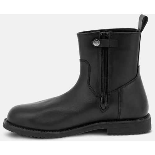 Middelhoge veiligheidslaarzen van volnerfleer, geschikt voor het dragen van chaps en gebruik in stijgbeugels. Gecertificeerd volgens EN ISO 20345: 2022 SB PS SR FO E HRO CI WPA WR, voor volledige bescherming. Nitrilrubberen zool met fijne groeven, bestand tegen uitglijden en contactwarmte en isolerend tegen kou. STAY DRY-membraan biedt 7 uur waterbestendigheid. De ademende werking houdt de voeten droog en voorkomt transpiratie. Zachte binnenzool voor optimaal werkcomfort. Handige treklus aan de achterkant om de laarzen eenvoudig aan te trekken en een waterdichte ritssluiting.