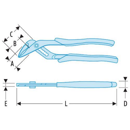 | Productnaam | Waterpomptang met grote capaciteit, Aantal standen: 8, Lengtes: 250 mm, Type nr.: 180 |
