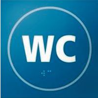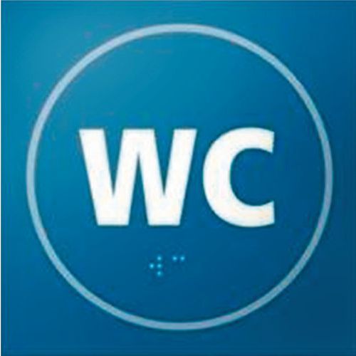 Het bord is in reliëf aangebracht om mindervalide die geen braille kunnen lezen, te helpen.